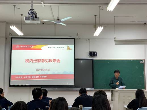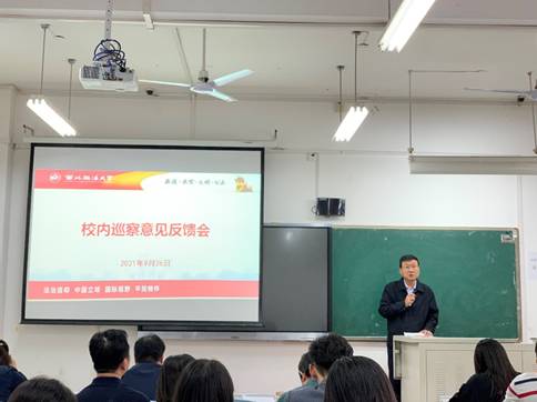 按照校党委2021年校内巡察工作统一部署,9月26日下午,赌场 在正心楼303教室召开校内巡察意见反馈会,校党委第二巡察组向学院反馈巡察情况。校党委副书记、党委第二巡察组组长郭武军,校纪委副书记、党委第二巡察组副组长康鹏及全体组员出席会议,学院领导班子成员、全体教职工及部分学生代表参加会议。会议由学院党委书记呼勇主持。