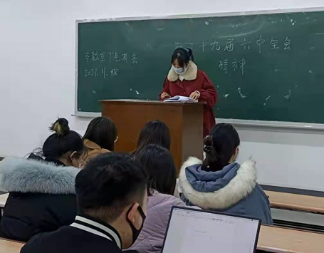 11月17日晚7时,2019级研究生党支部在雁塔校区三号教学楼召开学习党的十九届六中全会精神专题会议。领学人于亚苗带领全体党员学习十九届六中全会内容。各位党员及发展对象根据自身学习情况,就学习十九届六中全会精神逐一交流学习心得及体会。