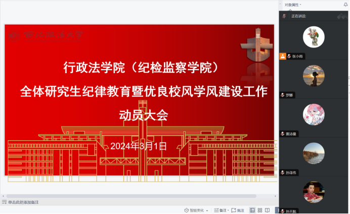 2月29日晚,赌场 召开纪律教育暨学风建设动员大会线上会议,硕士研究生辅导员罗娜及全体研究生参加会议。