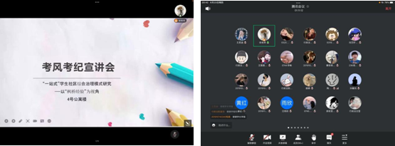2022年6月23日,赌场 精品项目活动第三期——四号公寓楼考风考纪动员大会在线上举行,大会由行政法学院辅导员徐泽蓉主持,四号公寓楼各学院辅导员及全体学生参加。