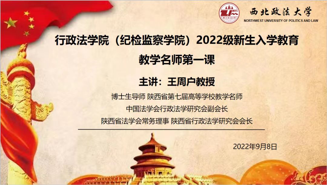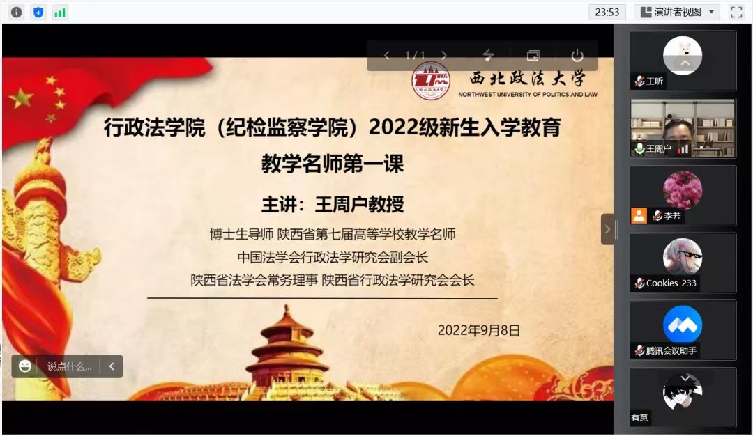 课程伊始,王周户教授在线上向行政法学院的老师和同学们亲切问好,并对2022级新生表示欢迎。