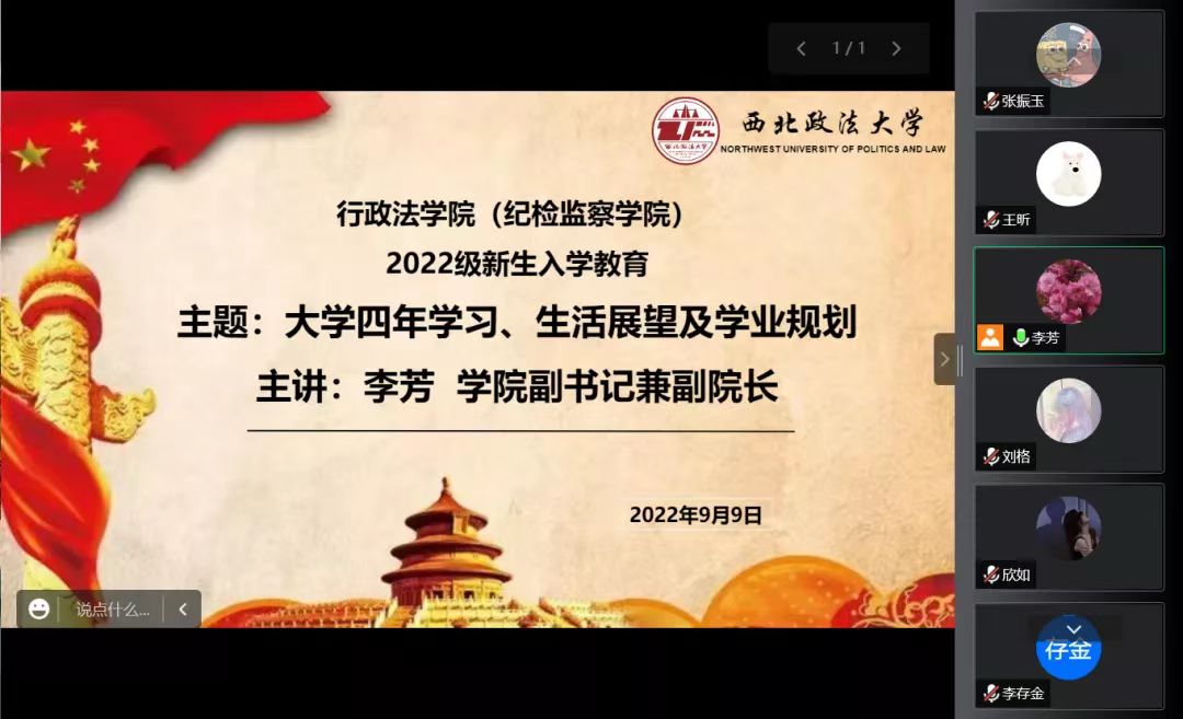 为了强化适应性教育,更好地引导新生过好教育衔接第一关,2022年9月9日上午,赌场 开展了以“大学四年学习、生活展望及学业规划”为主题的新生教育入学活动。本次活动采用线上教学的形式,由行政法学院副书记兼副院长李芳老师主讲,2022级辅导员王昕以及学院200名全体新生参加。