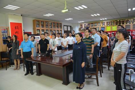 与会师生高唱国歌,认真聆听总书记重要讲话,共庆建党一百周年。