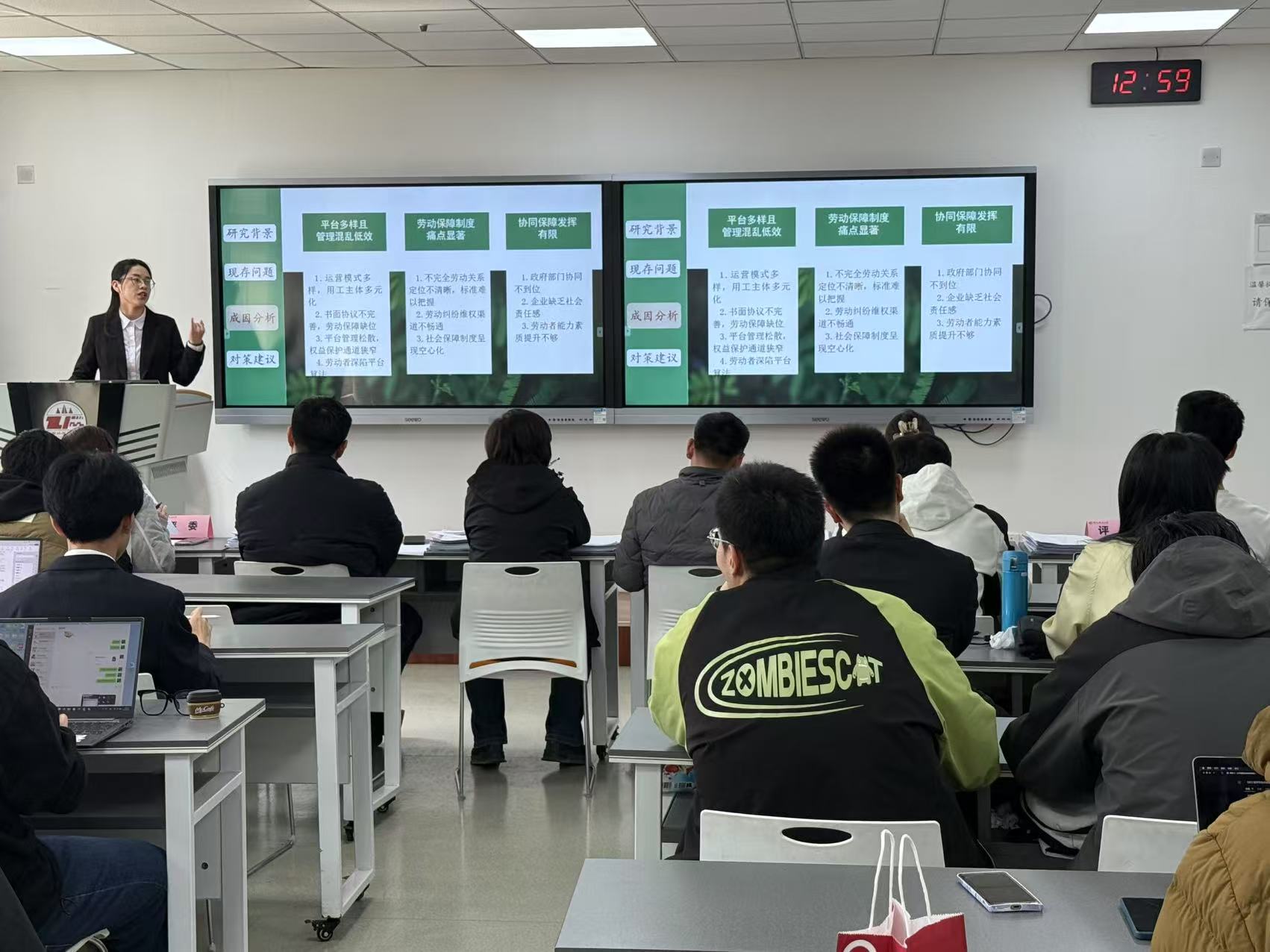 经过激烈的角逐,何锟团队展示的“新就业形态劳动者权益保障研究——基于西安市新就业群体权益保障的调查报告”荣获一等奖,宋雨森团队展示的“乡村振兴长效赋能的法治解码——基于脱贫家庭返贫防控的实证研究与制度创新”和 赵心童团队展示的“互联网时代下大学校园文学生态困境与突围——基于国内多所大学校园文学调研”荣获二等奖,“陕西省新就业形态劳动者社会保障现状与路径优化研究”等六个团队荣获三等奖。