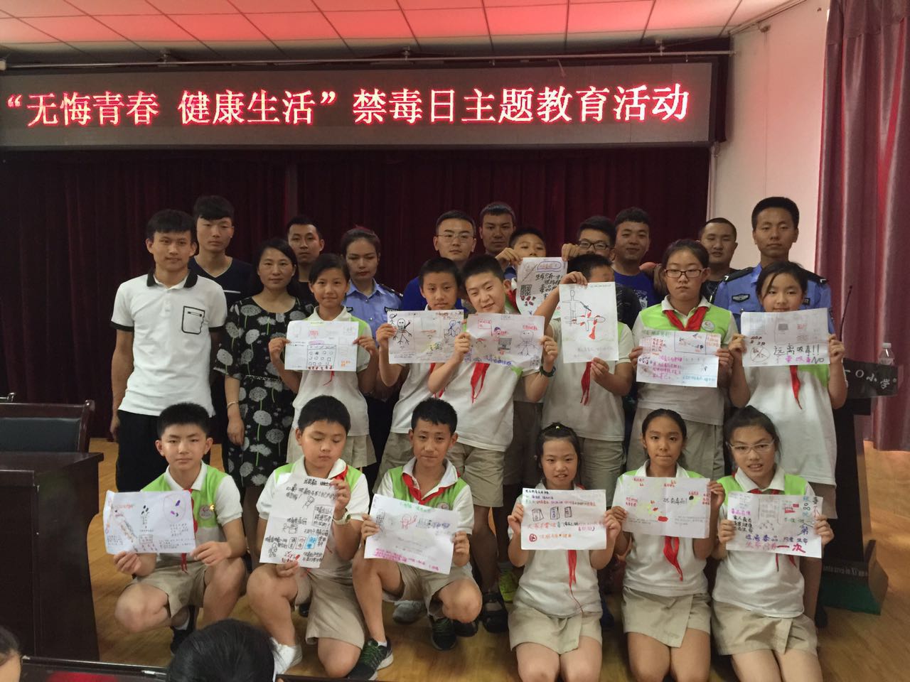 第三个环节是互动交流。我校师生,以及西安市治安局警官,与小学生们互动交流,小学生们踊跃发言,积极提问、回答相关知识,发表自己的感悟。同时,小学生们用画笔把毒品的危害,以及本次活动的感想与体会,用一幅图画表达出来。小朋友们天真可爱,积极参与,在场的所有小朋友都完成了一幅图画,表达了自己对于禁毒的看法,加深了小学生对毒品的危害有了更深刻的认识。