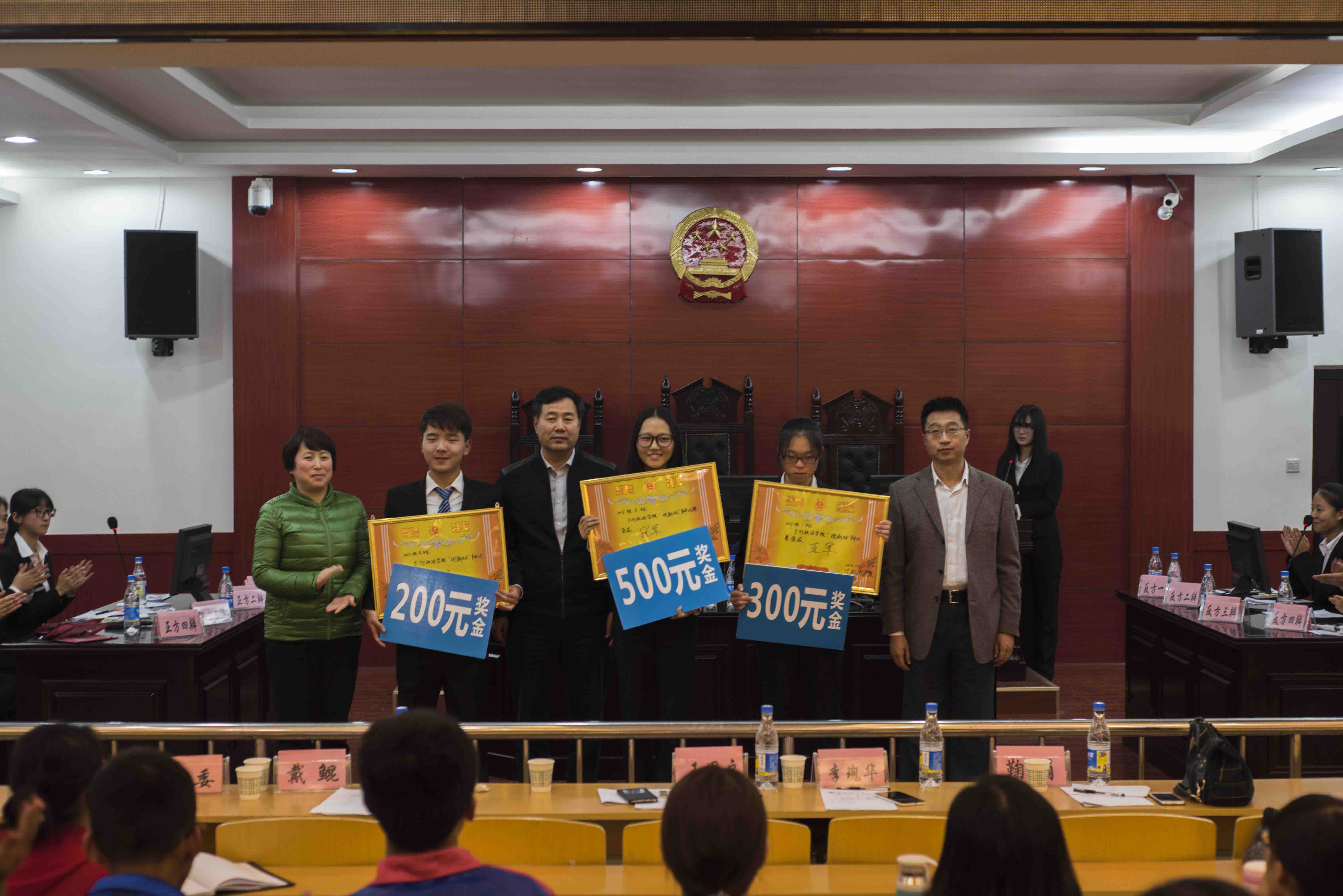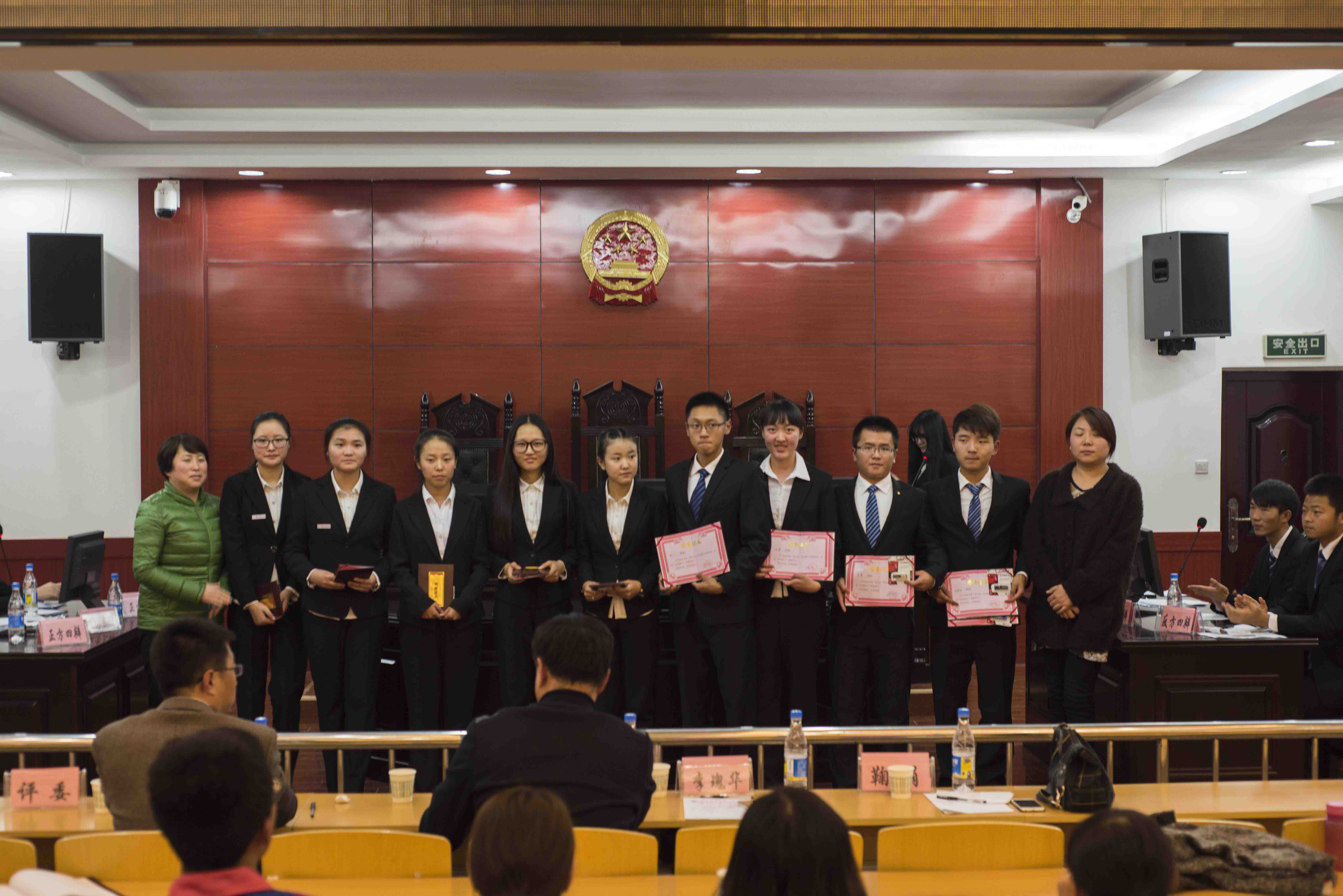 在最后的颁奖环节中,评委老师们首先为获得2015年行政法学院“新生杯”辩论赛冠军的行政法2015级3班代表,获得亚军的2015级1班代表以及获得季军的2015级4班代表颁发了奖状及奖金,并合影留念。接着为新生杯赛程中所有获得优秀辩手以及最佳辩手的同学颁奖并合影留念。21时,2015年行政法学院“新生杯”辩论赛圆满结束。
