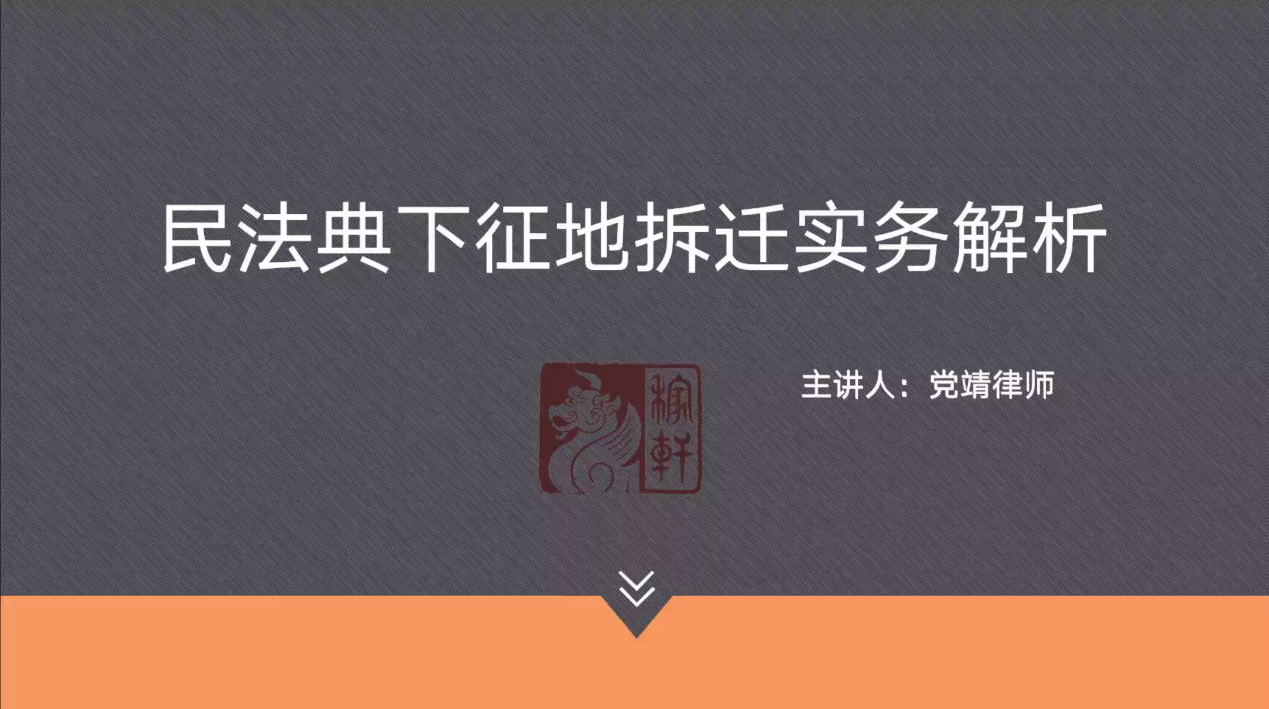 在第一部分中,党靖律师介绍了民法典及其物权编的基本情况、征收拆迁法律服务的认识过程、征收拆迁与土地制度物权保护三大层面,引出征地拆迁过程中集体土地所有权征收、宅基地使用权收回以及房屋收回几大重要问题;同时通过多个现实案例,分析提出征地拆迁并非单纯的民事、行政或刑事纠纷,其本质在于公权力与私权利的交叉地带。