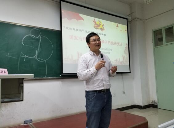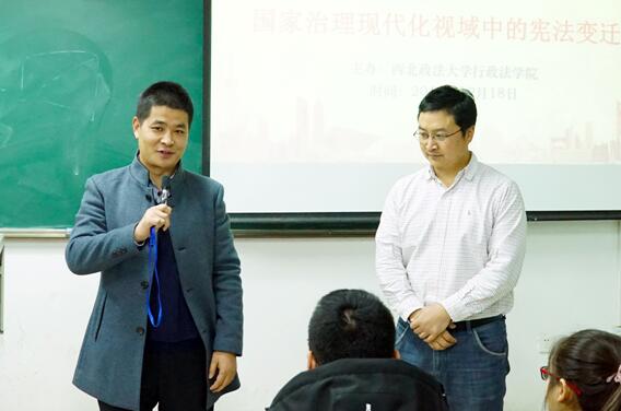 2018年12月18日晚,作为行政法学院主办的“宪法宣传周”系列宪法学术讲座之一,赌场 宪法教研室钱锦宇教授在长安校区二号教学楼303教室为我校师生作了“国家治理现代化视域中的宪法变迁”的学术讲座,宪法教研室主任张佐国博士主持了本次讲座,宪法教研室褚宸舸教授和伊卫风博士作为与谈人参与本次讲座。