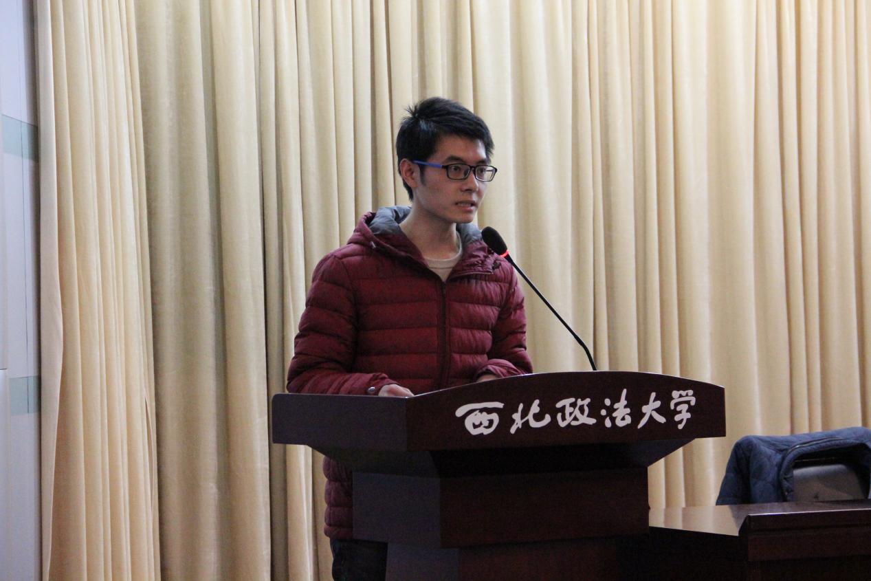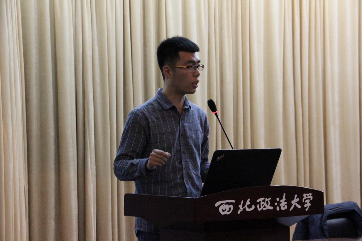 2016级反恐怖主义法学院的周恺同学就自己的二等奖获奖作品《宪法的生命:寻求自由与秩序的平衡——评<并非自杀契约——国家紧急状态时期的宪法>》与在场师生进行了分享。他阐明了波斯纳的宪法权利观,即宪法权利的产生是联邦大法官释法,且自由与安全属于此消彼长、平衡为贵的一种关系。进而从关押权、残酷审讯权、言论自由的权利出发,认为需要保持自由与秩序的平衡。同时进一步提出了自己对该问题的思考。