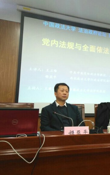3月15日晚,应中国政法大学法治政府研究院院长王敬波教授的邀请,姬亚平教授与中央党校王立峰教授一起做了《党内法规建设与依法治国的》主题报告。他首先指出党内法规建设对于我国法治建设具有重大意义,法学界应当高度重视党内法规的研究;其次,探讨了党内法规的学理性质,指出党内法规应当是我国社会主义法律体系的组成部分,具有公法性质和硬法性质,属于社会立法范畴,党的使命决定了党内法规以义务为本位。其次,分析了党内法规与国家法律的关系,二者应当是和谐统一、相辅相成、动态平衡的关系;最后,提出高校法学院系应当加强党内法规的学科建设,促进法学研究与中国实践相结合。王建芹教授做了点评。