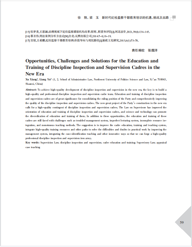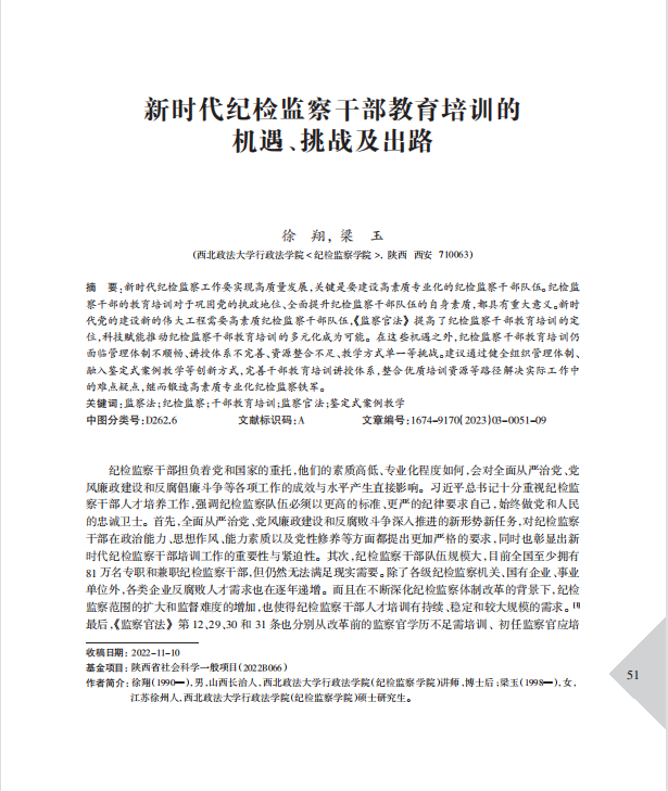 赌场 徐翔老师与监察法学专业研究生梁玉同学合作的《新时代纪检监察干部教育培训的机遇、挑战及出路》一文,在《廉政文化研究》2023年第3期刊发。