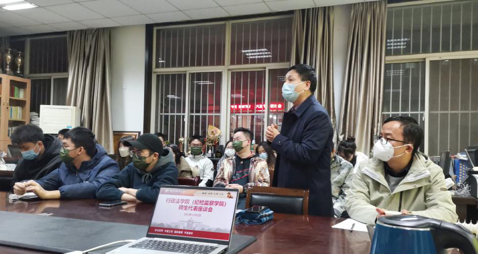 为进一步了解学生的所思所想,更好地解决各年级学生普遍关注的实际问题,行政法学院于12月2日下午,在正心楼学院资料室召开本科学生代表座谈会,校党委副书记、纪委书记、监察专员肖道远,学院院长姬亚平、副书记李芳,各年级本科生辅导员和学生代表共同参加。同时,于12月3日下午,组织各年级研究生代表召开了座谈会,学院党委书记赵玎玎、副院长井凯笛、研究生辅导员罗娜以及各班学生代表15人参加座谈。