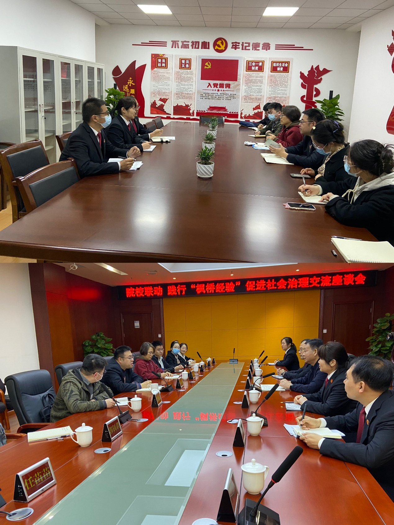 在法院本部召开的座谈会上,师生一行听取了院领导和相关业务处室法官关于“枫桥式”人民法庭创建、开展诉源治理、北跨巡回法庭、政法力量进网格等工作的介绍,就相关问题和法院领导、法官进行了详细交流,并就双方合作开展 “打造枫桥式人民法庭 服务人民群众高品质生活需要”典型案例暨新时代人民法庭建设案例选编工作达成了意向。