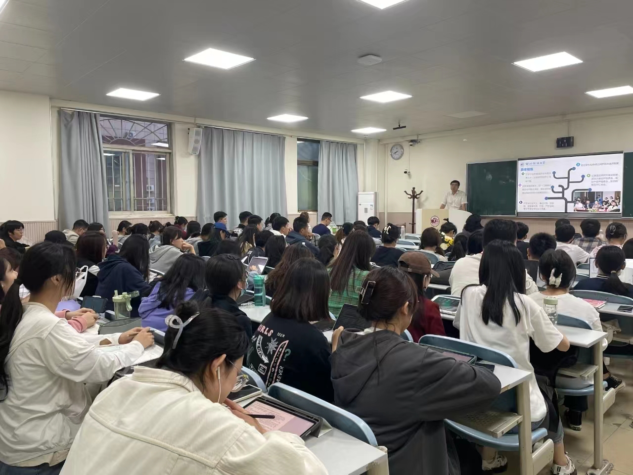 副院长杜国强副教授、杨永康副教授、周敏副教授,宪法学与行政法学专业2022级硕士研究生孙天航、孙俊、朱怡霏,以及有意报考宪法学与行政法学的近百位同学参加本次宣讲会,现场气氛热烈,宣讲会由2022级硕士研究生朱怡霏主持。