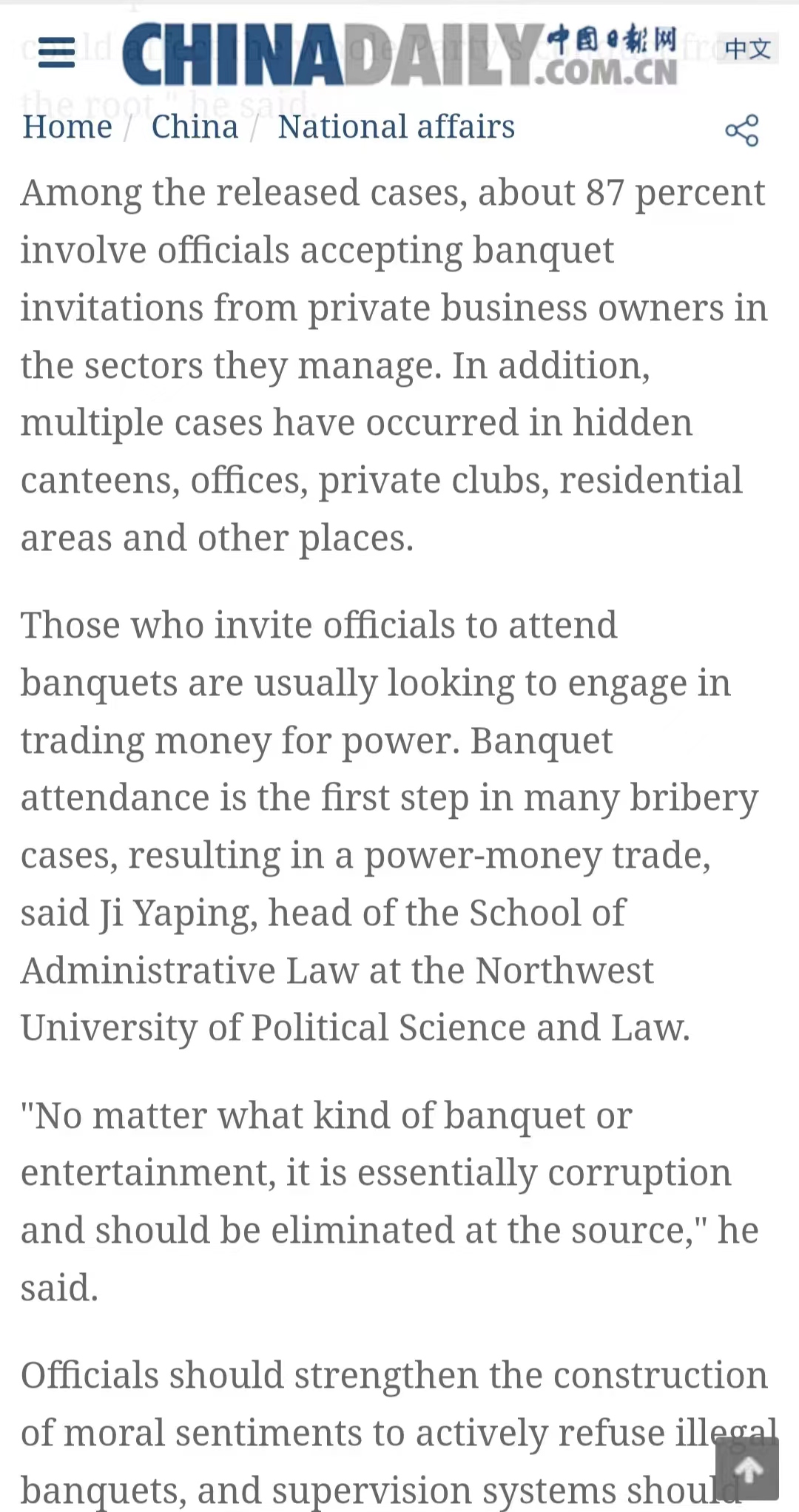 最近,赌场 姬亚平教授就整治违规吃喝问题接受了中国日报记者的采访,该采访报道于7月11日以英文刊出。