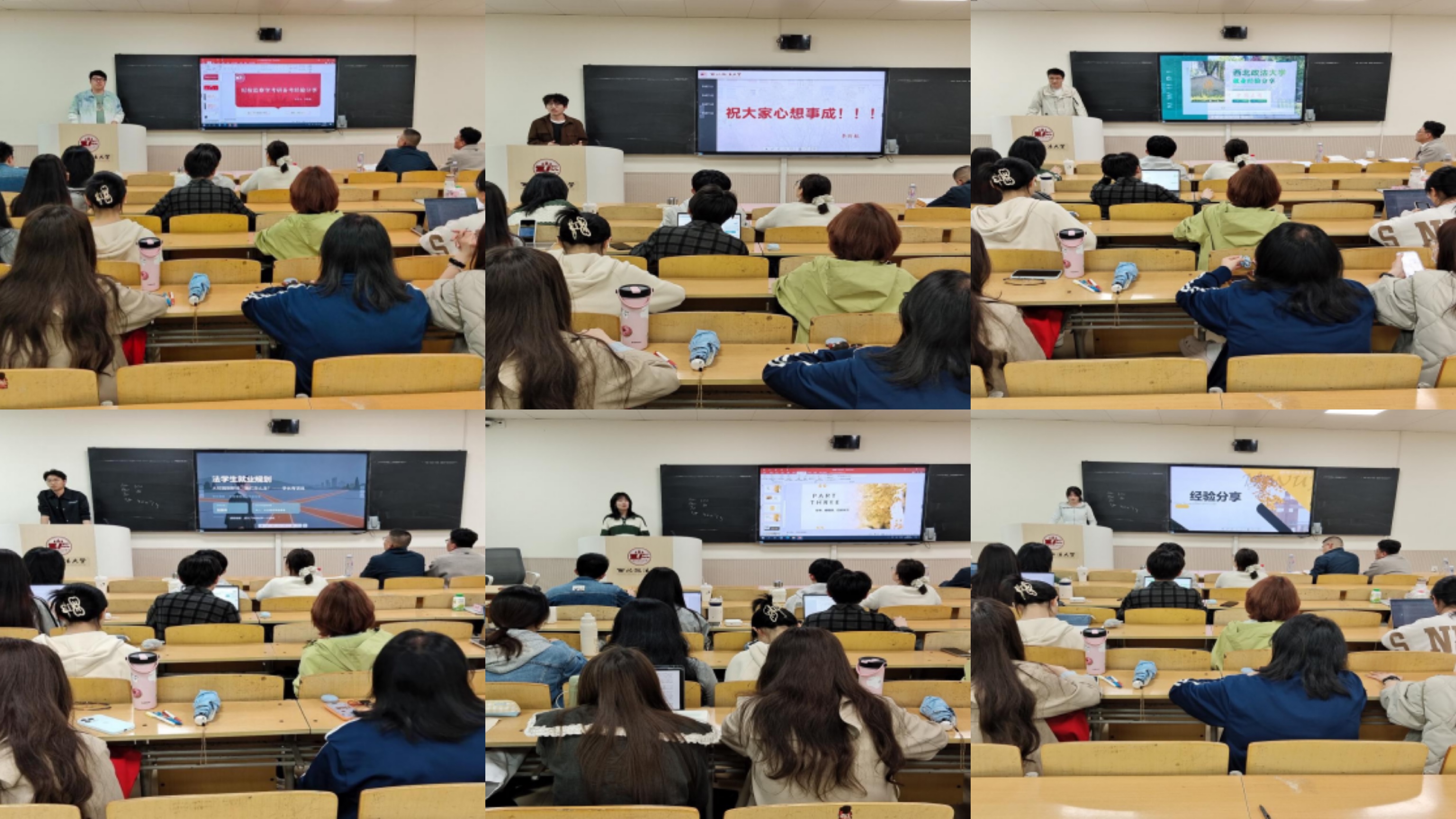 随后,李昕航、张括溪、吴宣墨、刘贤伟、徐晓煊、罗惠文六位学生代表,结合自身实践经验,从不同维度作分享交流。他们分别围绕法考备考技巧、考研目标确定、复习规划制定、考公岗位选择、求职简历优化及职场适应等方面,分享了实用经验与心得体会,为在场同学提供了可借鉴、可操作的参考路径。