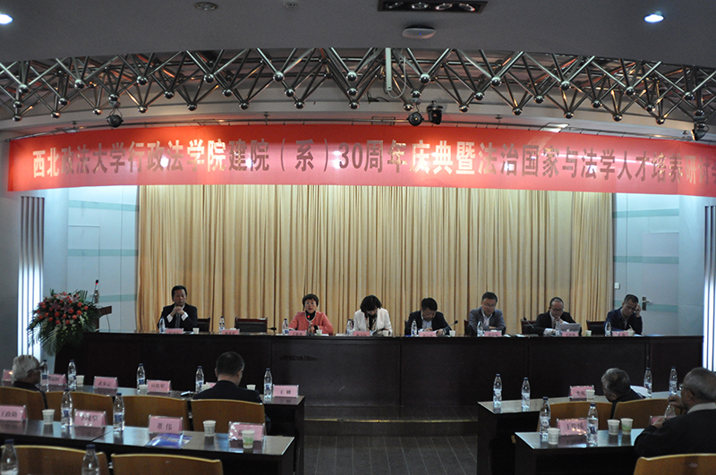 10月12日上午,我校行政法学院建院三十周年院庆盛典暨“法治国家与法学人才培养”研讨会在长安校区举行。中国法学会行政法学研究会名誉会长、行政法学院名誉院长应松年教授,校党委书记宋觉,校党委副书记赵健,副校长王麟,行政法系首任主任武步云教授,法治陕西协同创新中心主任王周户教授等出席会议。行政法学院全体教师,离退休教师代表,校友代表,各学院、相关职能部门负责人以及学生代表200余人参加会议。院庆盛典及研讨会分别由行政法学院党委书记呼勇和行政法学院院长姬亚平教授主持。