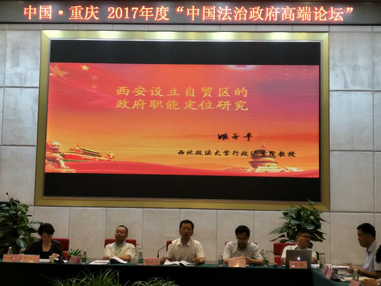 五位教师应邀参加此次会议。姬亚平教授在“国家治理现代化与简政放权”单元报告的主题是“西安设立自贸区的政府职能定位研究”。安子明副教授在“行政审批制度与综合行政执法体制改革”单元报告的主题是“论行政审批的契约化改革路径”。王周户教授、李瑰华教授、周敏副教授分别对第一、第三、第四单元报告人的论文做了精彩的点评。王周户教授还担任了第四单元主题研讨的主持人。此次会议取得圆满成功。研究方阵初步确定2018年第三届“中国法治政府高端论坛”在我校举行。
