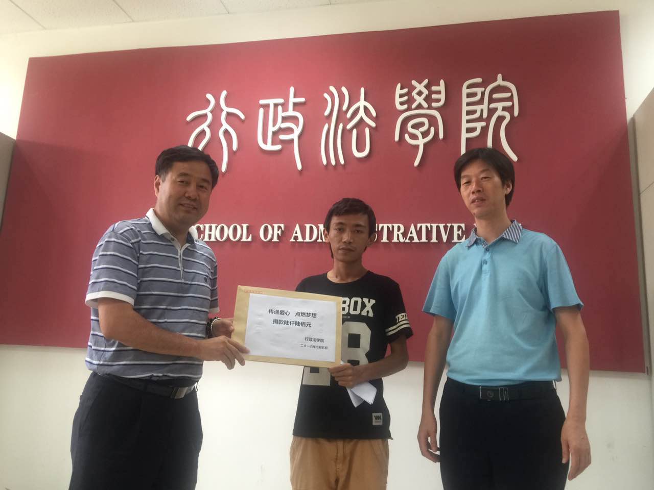 7月5日上午,在行政法学院会议室举行了学院教职工为2012级贫困学生次仁平措爱心捐款活动。