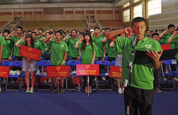 我校禁毒防艾社团的28名禁毒志愿者代表全程参与此次禁毒宣传活动。公安学院阿拉帕提江同学作为志愿者代表领誓,带领400多名青年禁毒志愿者庄严宣誓。
