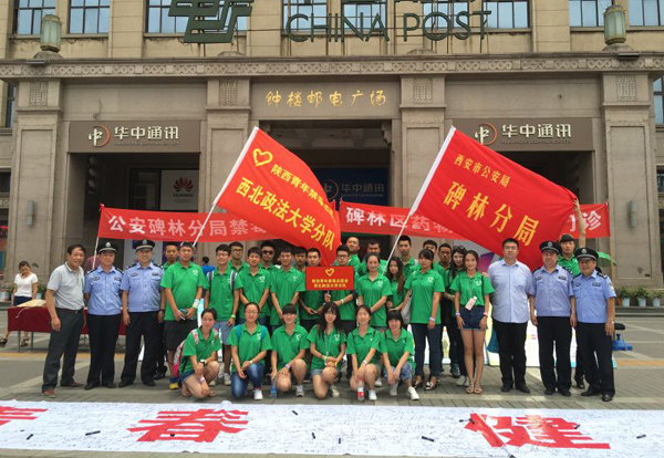 6月26日“世界禁毒日”,我校部分师生参与了省禁毒办、团省委、市禁毒办共同主办的“向毒品说NO——无毒青春,健康生活”禁毒宣传活动。陕西省副省长、省禁毒委主任、省公安厅厅长杜航伟,省公安厅副厅长、省禁毒委副主任、禁毒办主任张安新,共青团陕西省委书记段小龙,省综治办副主任胡跃宏,共青团陕西省委副书记单舒平等出席活动。