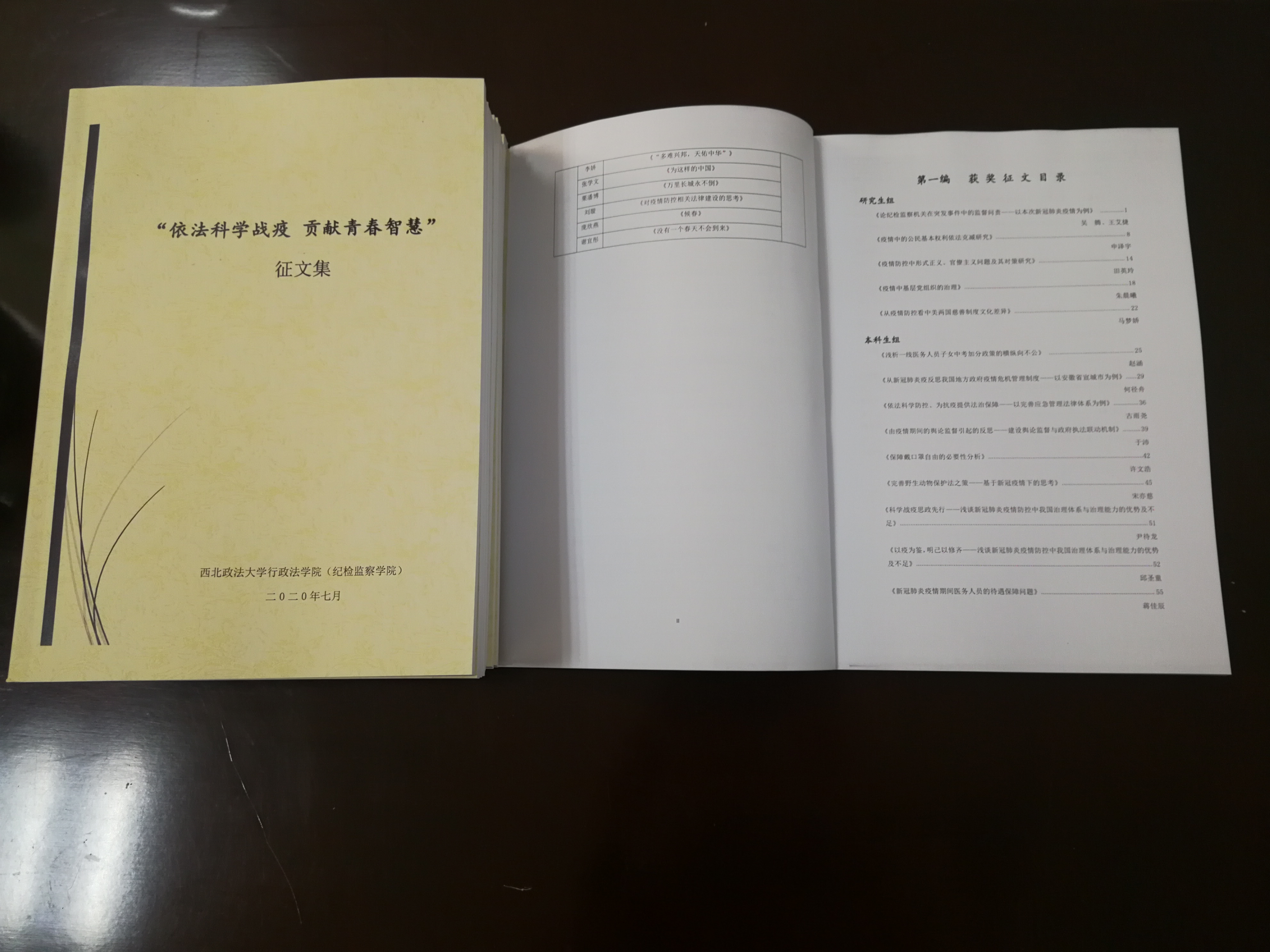 本次征文活动,学生参与度高,参与范围广,参赛作品紧扣“依法科学战疫、贡献青春智慧”的主题,抒发爱国情感,展现了疫情防控中我国在各方面的优势和积极探索,作品涉及范围广,包括法学、心理学、思政、社会学等内容,如《由疫情期间的舆论监督引起的反思——建设舆论监督与政府执法联动机制》、《保障戴口罩自由的必要性分析》、《从新冠肺炎疫情反思我国地方政府疫情危机应急管理制度——以安徽省宣城市为例》、《依法科学防控、为抗疫提供法治保障——以完善应急管理法律体系为例》、《新冠肺炎疫情期间医务人员的待遇保障问题》等。