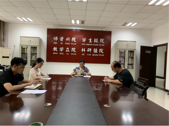 于学院资料室召开本学年学生工作总结暨假期工作安排会议,会议由学院党委副书记李芳主持,各年级辅导员到场参加。