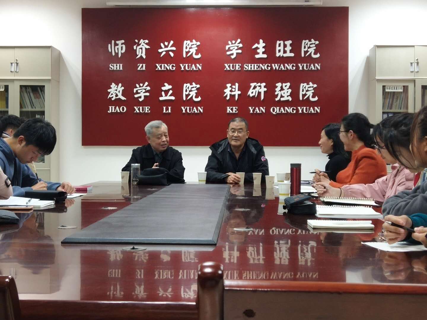随后,两位老教授与学生进行了互动交流,就法学学习方法、强身健体、生活自理等方面进行了经验分享。