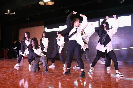 舞动青春,活力迸射。由李可诗、刘家妮等五位同学为大家带来的舞蹈《Maria》《Attention》《快乐崇拜》。火辣的舞蹈洋溢着青春的气息,流行的旋律让全场跟着一起挥动,霎时将全场的氛围燃到高潮。
