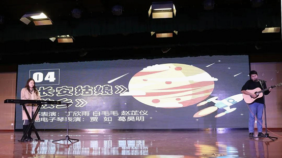 2019级贾如、葛昊明带来的吉他电子琴弹唱《故乡》又将在座观众的思绪萦回故乡,一字一句,倾诉对故土的思与恋、诚与爱。台下掌声迎来又送去。