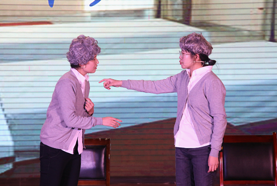 风吹雨成沙,时间抵不过白发。由温艳蕊、李昱杉携手2020级新生带来的小品《我的姐妹》上演了一段深切的姐妹情:从校园到职场再到疗养院,从孩童到成人再到两鬓斑白,时光荏苒,岁月如梭,友谊长存!