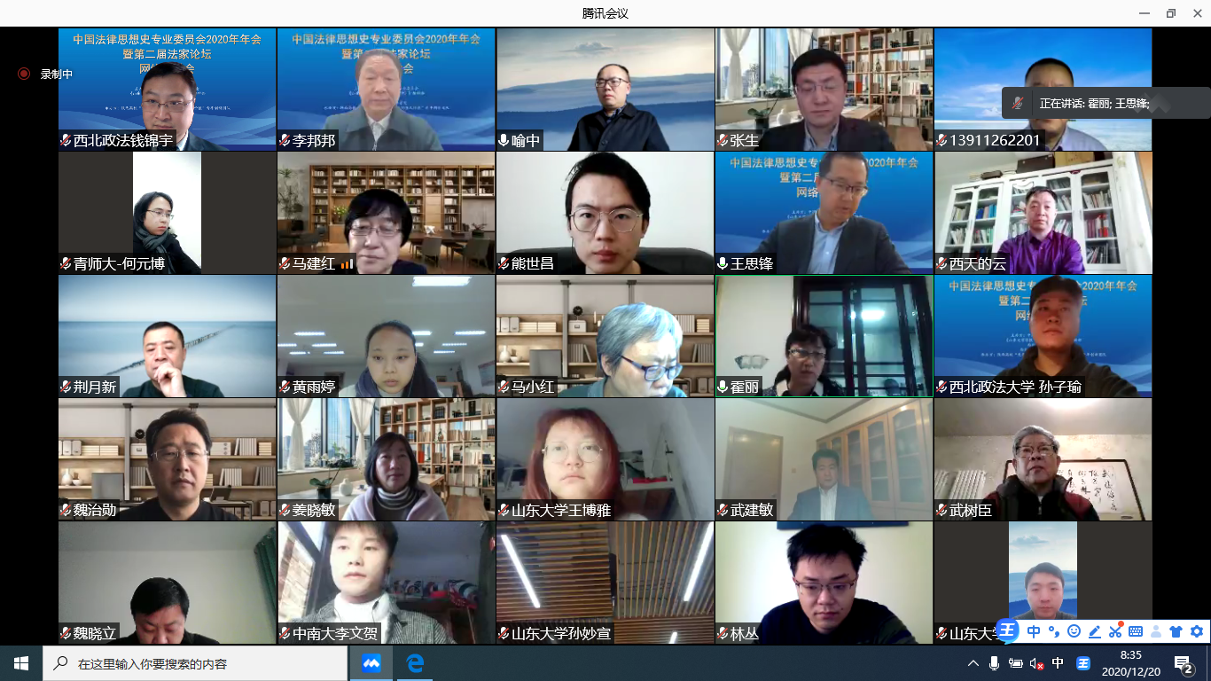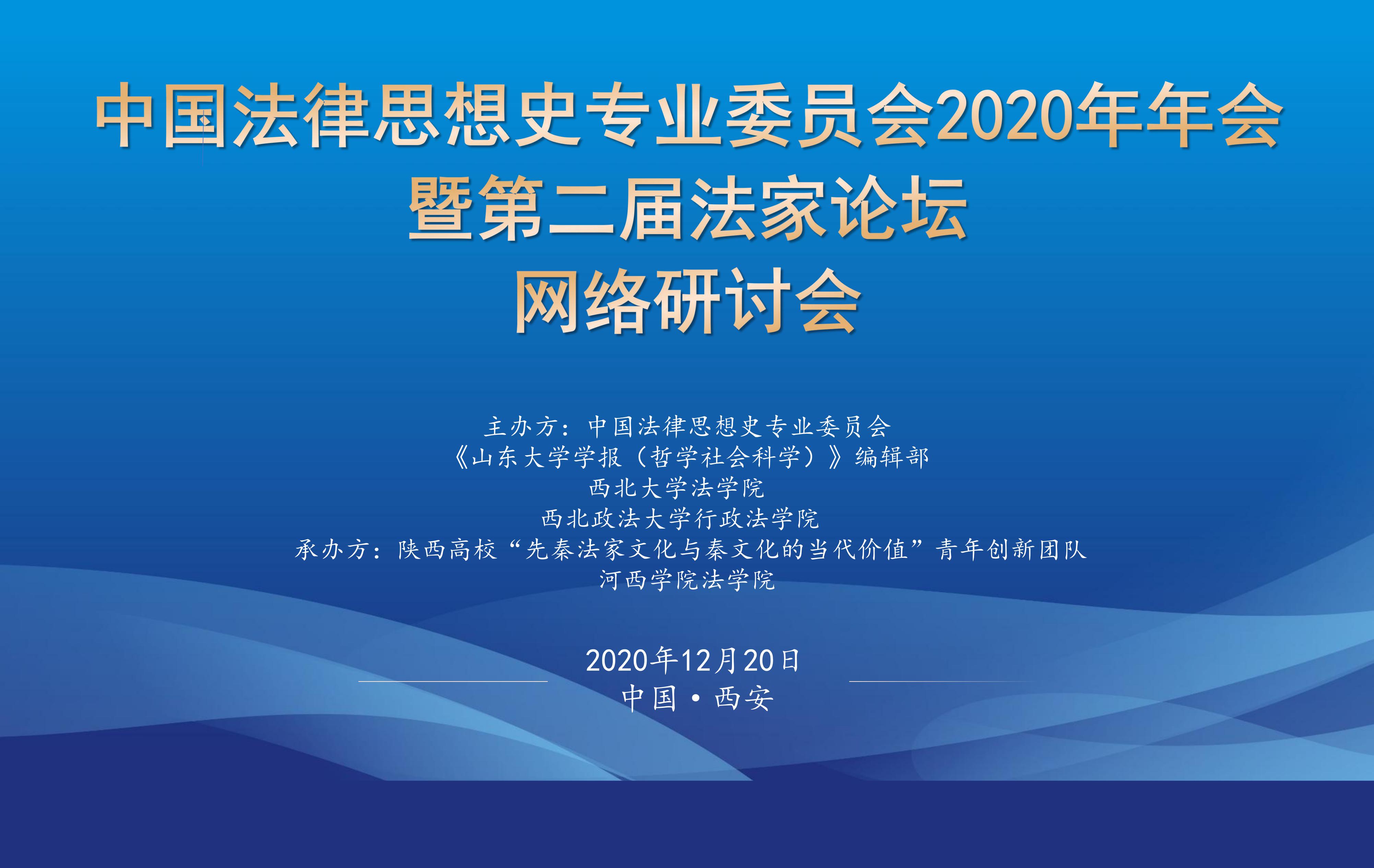 12月20日,由中国法律思想史专业委员会、《山东大学学报(哲学社会科学)》编辑部、西北大学法学院、赌场 主办,陕西高校“先秦法家思想与秦文化的当代价值”青年创新团队与河西学院法学院承办的中国法律思想史专业委员会2020年年会暨第二届法家论坛网络研讨会召开。来自中国社会科学院法学研究所、清华大学、中国人民大学、山东大学、中国政法大学、北京师范大学、中南财经政法大学、青岛科技大学、沈阳师范大学、山东师范大学、杭州师范大学、青海师范大学、中共广东省委党校、西北工业大学、西北农林科技大学、商务印书馆、西北大学、赌场 、河西学院等高校和出版机构90余位专家学者出席本次会议,围绕先秦法家文本与思想、法家流派、先秦法家思想的当代价值等议题进行了深入探讨。与会学者一直认为,要在习近平法治思想的指导下,推进中国法律史研究的守正创新,为中国国家治理现代化和法治中国建设做出积极贡献。