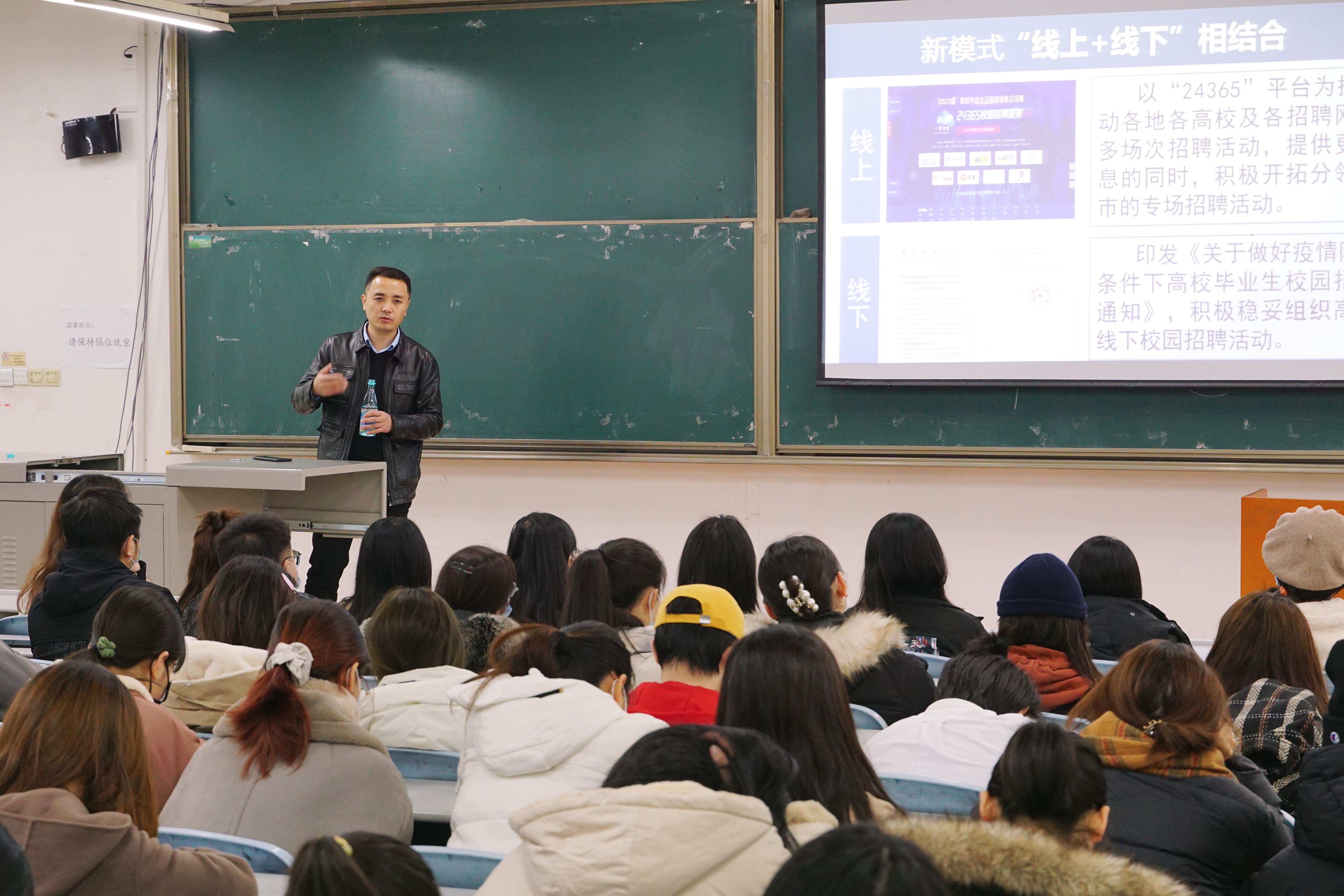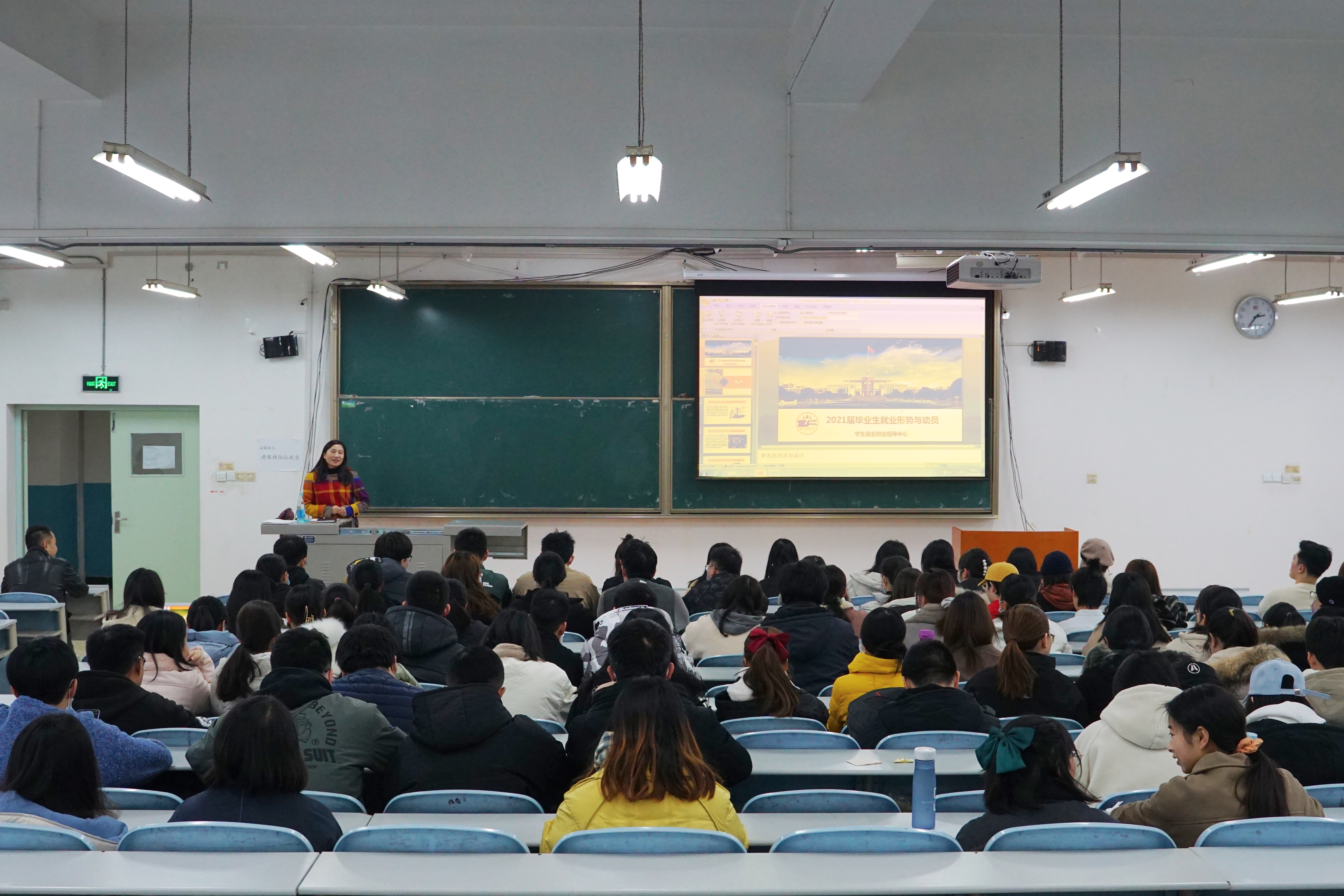 2020年12月28日下午,赌场 在长安校区AJ12教室举办2021届毕业生就业推进会。会议由学校招生就业处副处长李君主讲,学院副书记、2017级辅导员老师以及2017级全体学生参加会议。