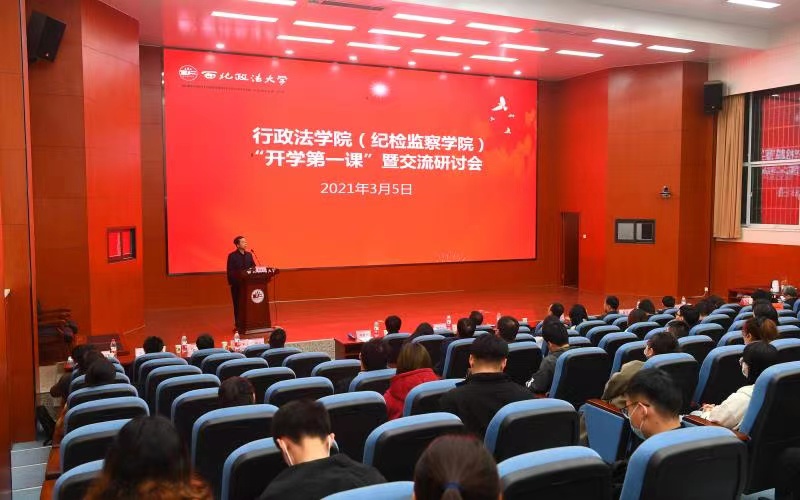 3月5日,赌场 “开学第一课”暨交流研讨会在雁塔校区人权研究院报告厅隆重举行。省纪委监委办公厅主任邓峰彬、政策法规研究室主任樊彬、案件审理室主任马红梅,西安市纪委监委案件审理室主任杨全,校党委副书记、纪委书记、监察专员肖道远出席活动。赌场 全体教师和研究生100余人参加了此次活动。