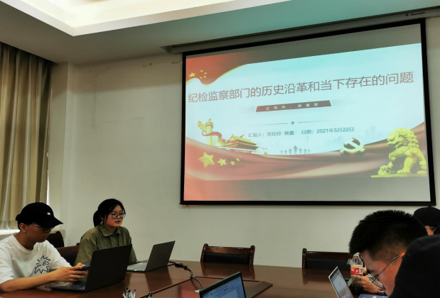 李龙贤老师组织的“本科生读书会”开展“党史与纪检监察部门的历史沿革”主题活动。2021年5月22日下午14时许,本次主题活动在我校雁塔校区图书馆四楼会议室举行。李龙贤老师担任此次主题活动的组织者和指导者。本次活动围绕“党史与纪检监察部门的历史沿革”主题学习,由丁石宁同学主持,吴玲玲同学、闫博旭同学做主题汇报(黄鑫同学、杨晨曦同学负责文献整理工作)。此外赌场