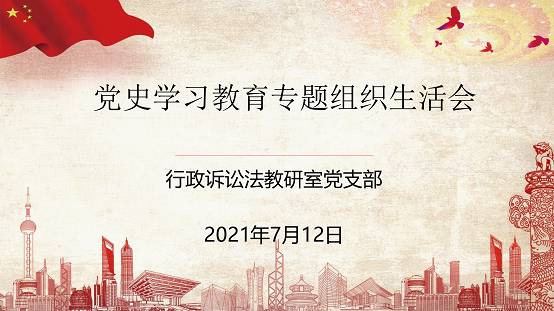 按照学校党委和院党委的安排部署,7月12日下午,行政诉讼法教研室党支部在学院党员活动室召开了党史学习教育专题组织生活会,支部8名党员同志全部按时参加了会议,专题组织生活会由党支部书记王玉楼同志主持。