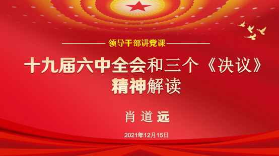肖道远讲到,十九届六中全会审议通过了《中共中央关于党的百年奋斗重大成就和历史经验的决议》。这是我们党的历史上第三个历史决议。回顾党的百年历史,三个“历史决议”,是三个关键时刻的关键总结。三个历史决议形成于党发展的不同时期,具有各自不同的时代主题和现实需要,回答了不同的时代之问,既一脉相承,又与时俱进。不仅体现了党在不同历史阶段的思想认识和意识形态具有一致性和传承性,也构成过去、现在和未来的相互衔接,彰显时代性和前瞻性。三个决议都体现了在三个阶段和时期党的最高领导人和领导思想对党领导的革命和社会建设事业的决定作用,即是全党领导核心和指导思想的作用和意义。他强调,学习十九届六中全会精神要将党的历史上这三个历史决议结合在一起学习,要在历史的“变与不变”中学习领会“国之大者”,从而不断增强“四个意识”,坚定“四个自信”,做到“两个维护”。
