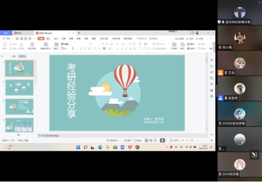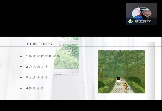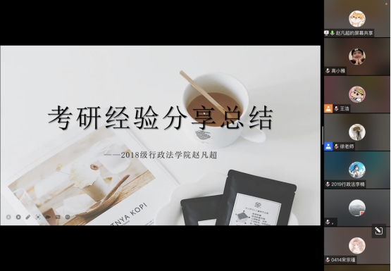 2019级辅导员徐泽蓉主持,并邀请本院2018级6位成功上岸本校的本科生进行分享交流。