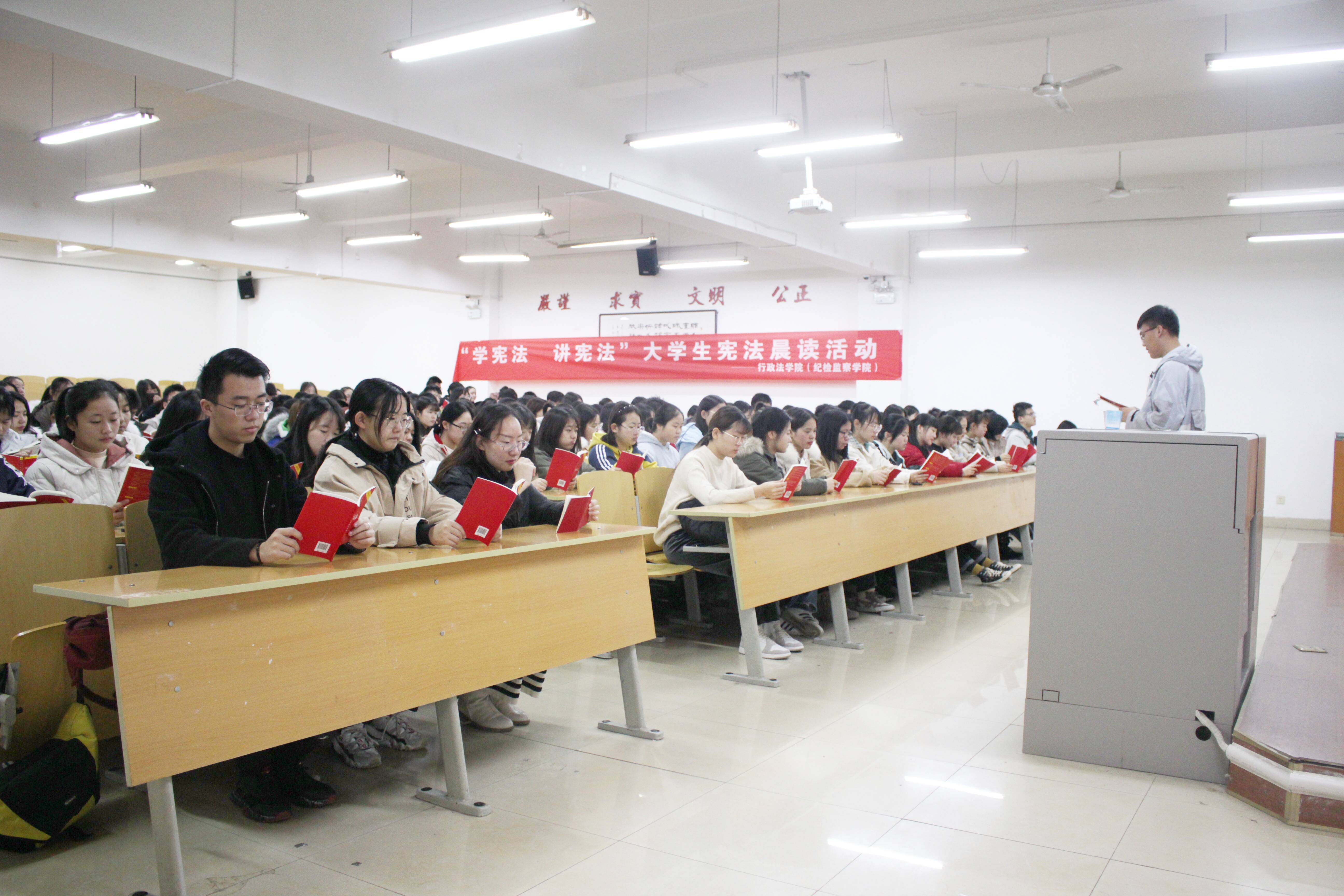 2019年12月3日清晨,赌场 2019级全体同学在晨读教室AJ33开展了“学宪法 讲宪法”大学生宪法晨读活动,同学们通过领读与自由诵读等多种方式,仔细阅读宪法法条,全面了解宪法法规,增强了同学们懂法、守法、爱法的意识。 晨读活动分为领读与自由诵读两个环节,同学们在跟读过程中了解宪法重点条文,体会其中所蕴含的精神内涵。自由诵读环节里大家相互交流,深入挖掘宪法中的为民情怀,体会宪法精神,树立自觉维护宪法的意识。 本次宪法晨读活动,普及了宪法知识,弘扬了宪法精神,维护了宪法权威,让宪法深入人心。促进了同学们尊法、学法、守法、用法的良好行为习惯养成,推动了赌场 形成更加浓厚的尊崇宪法、遵守宪法、维护宪法的学术氛围。
