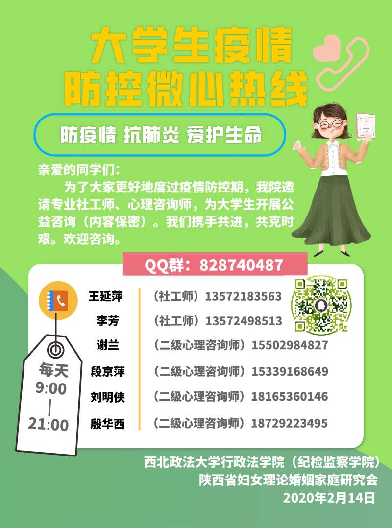 2020年3月9日14:30至16:00,赌场 组织辅导员、研究生、本科生500多名师生(没有线上课程任务的)共同线上收看教育部“全国大学生同上一堂疫情防控思政大课”。 线上讲课中,四位教授把疫情防控中涌现出的先进典型、英雄人物和感人事迹,作为在线课堂中的生动教材和鲜活事例,将爱国主义、制度优势、历史传承等知识点讲授给学生,将规则意识、责任意识、团结精神、担当精神传递给学生,让学生们在学习知识的同时能够明事理、悟真理、知感恩。 通过收看,师生们更加认识到,在以习近平同志为核心的党中央坚强领导下打赢这场疫情防控人民战、总体战、阻击战的信心和决心,深刻认识到中国抗击疫情过程中所彰显的中国共产党的领导和中国特色社会主义制度的显著优势,中国特色社会主义制度优势已经转化为公共卫生治理中的“联防联控、科学防治、精准施策”的治理方案与治理效能;体验到“一方有难、八方支援、众志成城、共克时艰”的温度与坚守;感受到中国方案与中国精神的智慧与伟大;见证了新时代青年人的责任与勇于担当,舍小我顾大我,舍小家保大家的大爱与格局。 同时,也引导大学生正确理性应对疫情,致敬逆行英雄,涵养道德操守,培育科学精神,感受中国力量和民族智慧,坚定信心,做好自己,配合学校的工作安排收看后,学生们展开热列讨论,线上相互交流心得体会,收到200多篇学习感悟。 2018级研究生楚向月说到“此次疫情防疫思政课,是一次人生观的重塑和价值观的洗礼,在任何时候只有坚持党的领导,充分依靠人民群众,全国上下才能团结一致,遇逢一方有难,才得八方支援”。2018级吴悦说到“我们要坚定党中央的战略思想,我们要坚定地跟党走”。2019级研究生陈帅说到“不忘历史才能走向未来,建国以来我们经历了多次疫情大考,靠的就是党的领导、全国人民的团结一致我们取得了胜利”。 2018级郭美美“要辩证的看待这次疫情危机”。2018级、姚怡辛说到“应对挑战是从当下的一时一刻做起,让自己进入学习状态,危机也是契机,通过这次疫情希望我们有更多的思考和成长”。2018级朱松说到“这是一堂人生引领课,以后会增强疫情意识”。2017级黎一可说到“要把这次疫情当做学习的机会,要好好想象自己的人生规划,要树立正确的人生观、价值观”。 2017级张熠鸿说到“面对疫情学生们应积极理智应对,而不能过度恐慌,坚持不信谣不传谣,密切关注官方信息渠道”。2017级李沁姚说到“要向顽强不屈的武汉同胞表达敬意,武汉人民是英雄的人民,每个人都是平凡人,但每个人却都不平凡”。 还有学生表示“人类与自然是命运共同体,要尊重自然、敬畏自然,杜绝食用野生动物;要戴口罩、勤洗手、合理安排作息时间;遵守国家、学校的教学部署与安排,绝不提前返校;要好好读书”等等。 通过线上收看这次疫情防控思政教育课,师生们收获满满,有学有思,有认识有行动,观后感短小精悍,道出了学生们的心声。疫情是危机也是历练、是成长、是行动。 疫情之下,众志成城。全国联防联控,共同抗疫。随着疫情的发展与防控工作的需要,能够帮助学生们平安、顺利度过疫情,赌场 联手陕西省妇女研究会设立了“大学生疫情防控微心热线”,邀请王延萍、谢兰、段京平、刘明侠、殷华西,以及李芳等6名社工师,心理咨询师为学生提供线上公益咨询。通过热线、邮箱和QQ群三种方式为学生们提供相关援助,包括:指导和心理压力疏解服务,疫情即时信息、官方疫情文件、学院学习资料。 同时,招募学生志愿者协助开展热线工作,虽在假期但学生的参与积极性很高,最后筛选了7名学生,经过培训成为志愿者,协助团队工作。 “微心热线”自2月10日上线已经运营1个月,对指导学生的学习和落实国家疫情防控的政策起到了积极有效的宣传、解释作用;对学生的来电、邮电及时辅导,回复,对学生的情绪疏导,压力缓解有一定的帮助作用。 附:大学生疫情防控微心团队学生志愿者 研究生:陈帅、李琦琦、李金颖、田英玲、薛蓉 本科生:李娇、任丹。 赌场 2020年3月10日