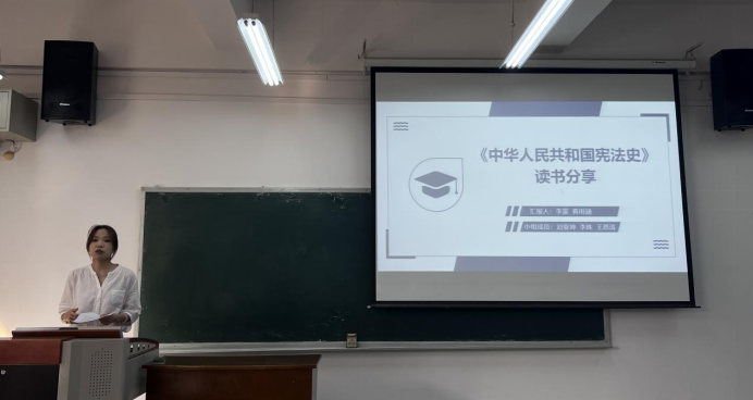 李蒙与蒋雨涵同学就《中华人民共和国宪法史》一书按我国现代宪法的历史演进为脉络展开汇报,主要分为三个部分:宪法史的意义与价值、共同纲领到八二宪法和历史的启迪。首先,李蒙同学向大家介绍了本书的作者许崇德教授,并从中国宪法产生的客观历史条件和历史上的宪法观两个角度阐述了宪法史研究的意义;按照时间顺序,两位主讲人为同学们梳理了现代我国宪法的发展与演进,并就保障宪法实施与宪法监督进行展望。