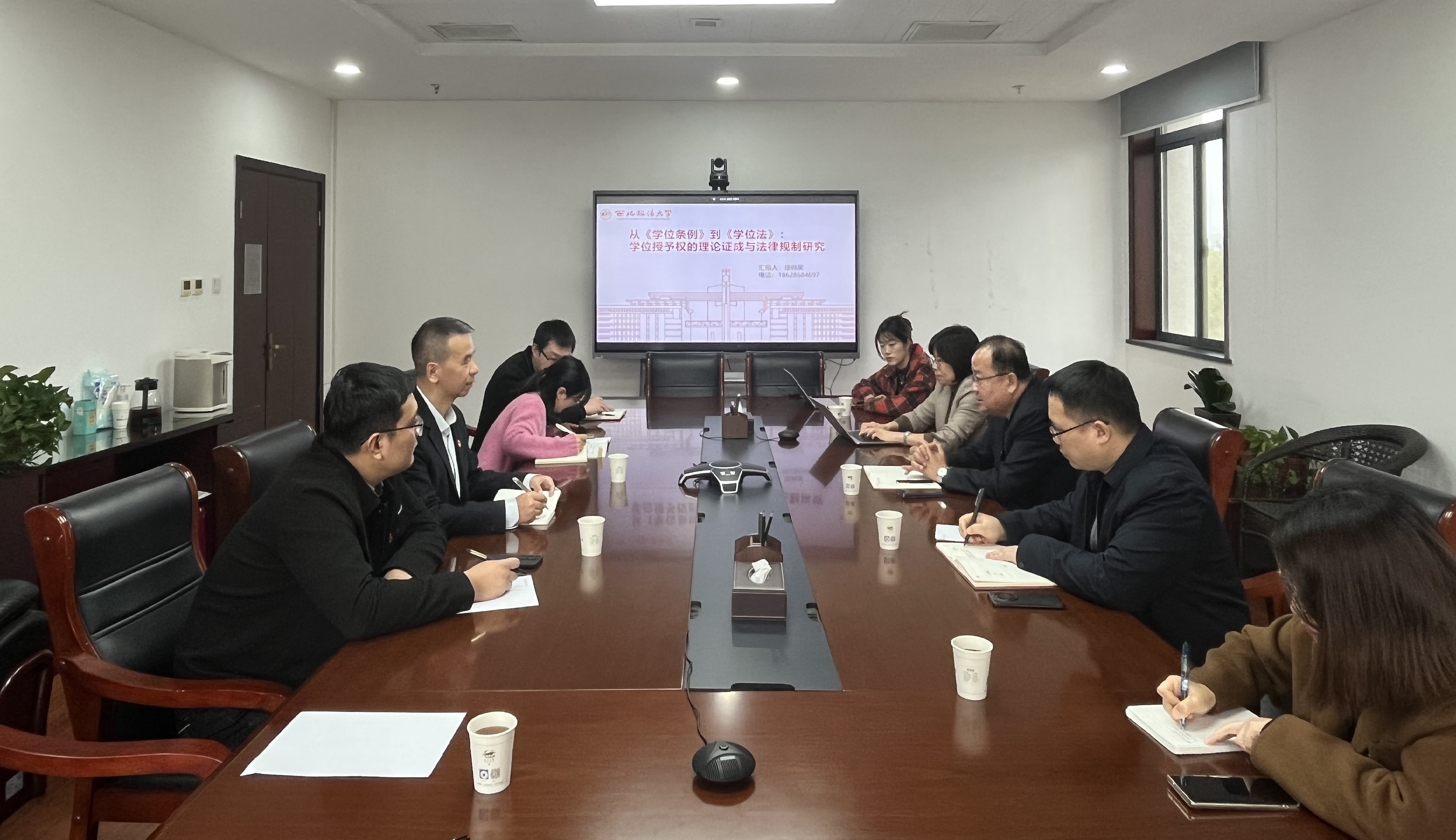 康韩笑从高校学位授予权的理论证成、高校学位授予案的实证分析、高校学位授予权存在的法律风险、法律风险的归因、法律规制五方面对《学位法》进行了解读。与会人员结合工作实际,对《学位法》实施后的风险点及应对策略进行了深入研讨。大家表示,通过学习交流加深了对《学位法》的认识,为准确把握法律规定、依法开展学位相关工作、推进研究生教育高质量发展奠定了坚实基础。