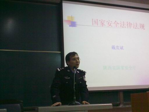 为了充分发挥校友的资源优势,调动在校学生的学习积极性,行政法学院邀请了89级校友、陕西省国家安全厅戴友斌处长为赌场 学生做了一场题为《行政法视野下的国家安全法》报告。