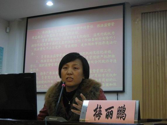 在报告中,梅局长指出了工商部门的职责,工商行政执法中的热点以及难点问题等,并介绍了反垄断与反不正当竞争执法,以及保健食品查处案例等多方面的难点问题。同时,她提醒大学生增强法律意识,尤其是在发现违法现象时及时向有关部门举报。